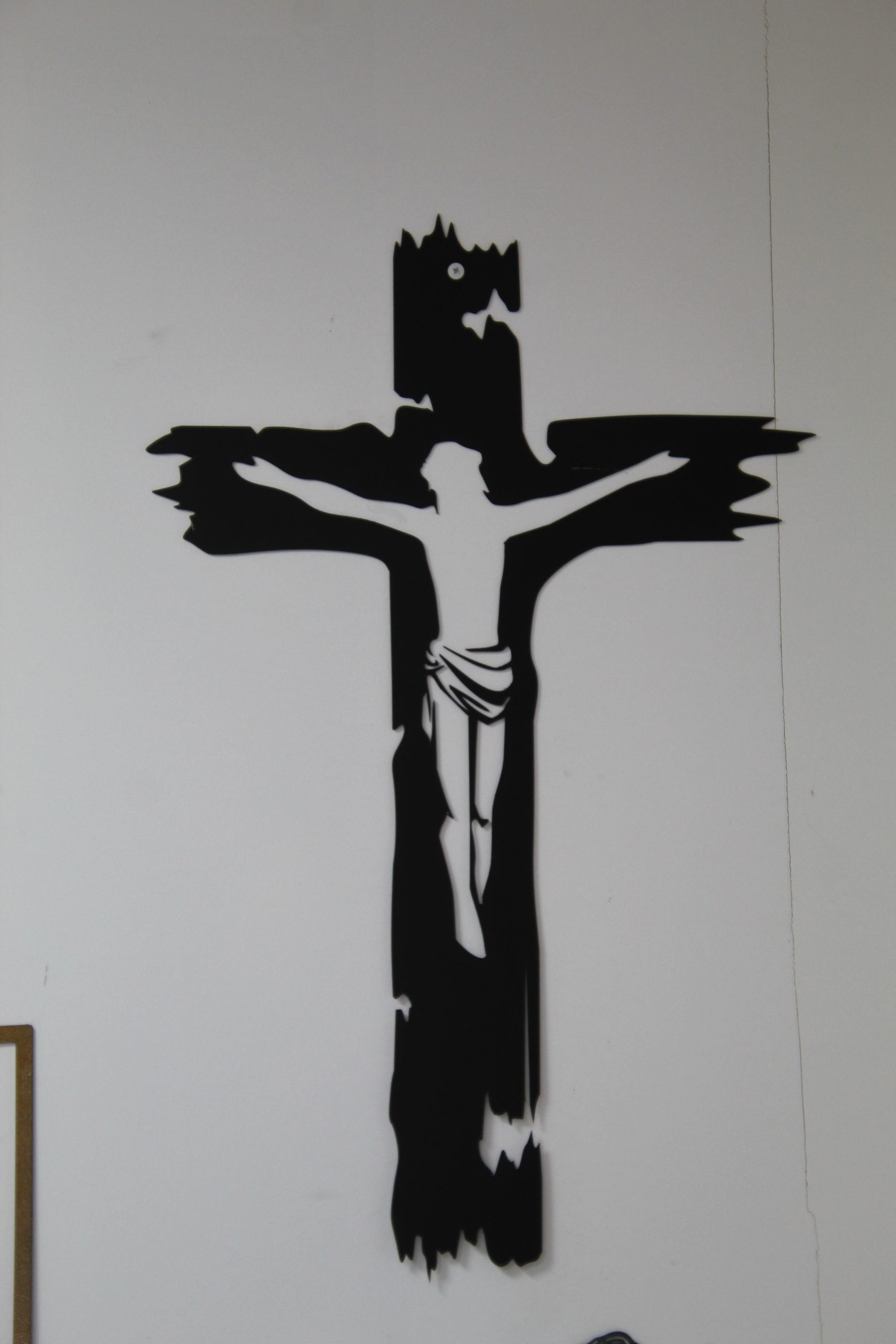 צלב ישו ממתכת בחיתוך לייזר בעיצוב חד, נקי ומרשים, המשלב עומק רוחני עם איכות תעשייתית גבוהה. קווי החיתוך המדויקים יוצרים יצירה עוצמתית שמוסיפה משמעות ונוכחות לכל חלל.
