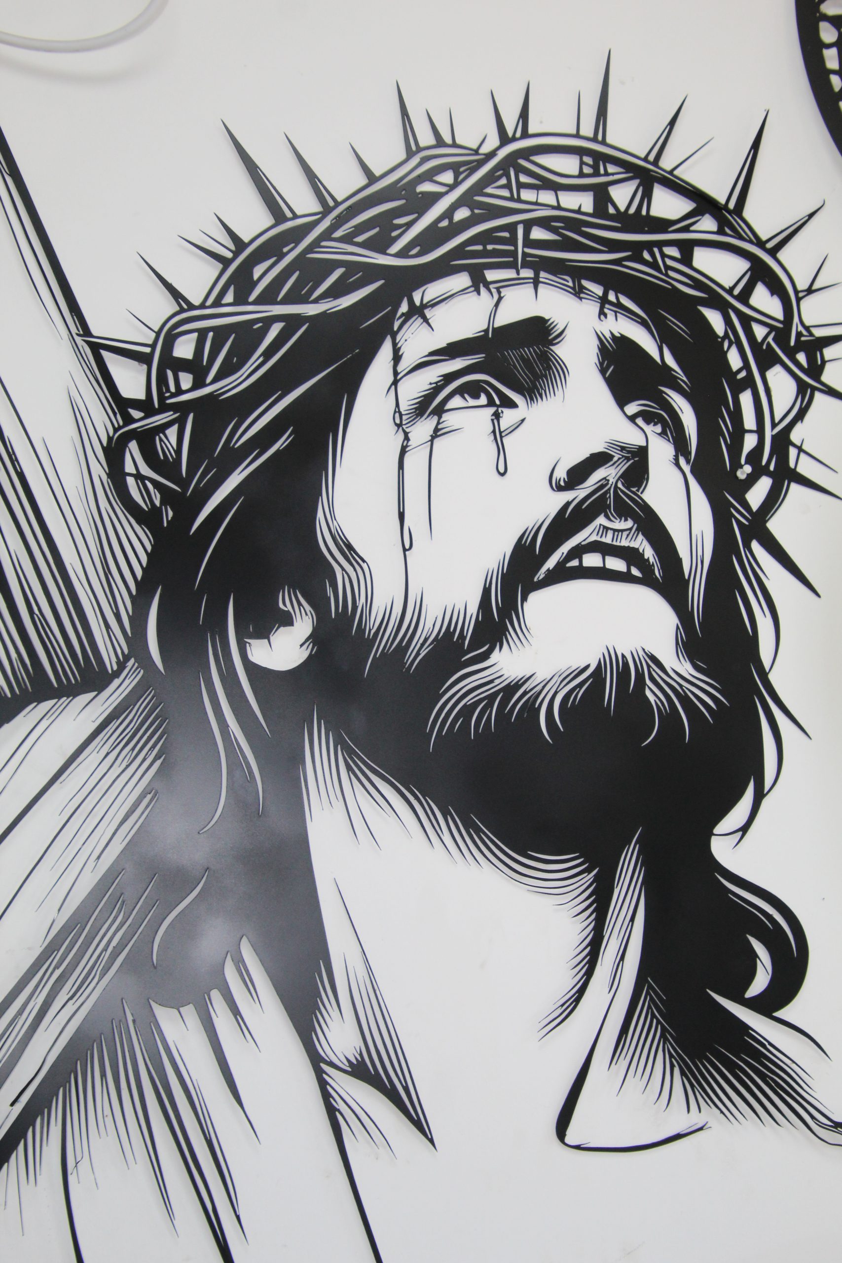 Jesus metal art crafted with precision and strength, combining meaningful design with industrial-grade metalwork. Ideal for private spaces, institutions, churches, entrances, and outdoor areas, this piece delivers a strong visual and emotional presence.